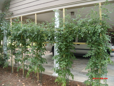 Looking for ‘patio’ types for container gardening or maybe for a Topsy Turvey container? ‘Patio’ plants are dwarf varieties showing some form of compact habit. (If you have to share space with your plant, you might want it to keep to itself.) Really, any tomato plant can be grown in a container. Any tomato plant can be pruned as well. You do want your container to be at least the size of a 5 gallon bucket. Some people prefer buckets to the good ‘ole ground...just check out the “customer photo” page and see some monster plants in containers. If your plants get that big, they will get top heavy as well, so you will want to stake them or tie them so they can't fall over. These are the ones that we chose for their described, somewhat compact growth: